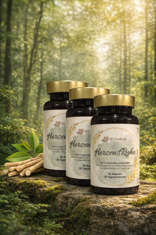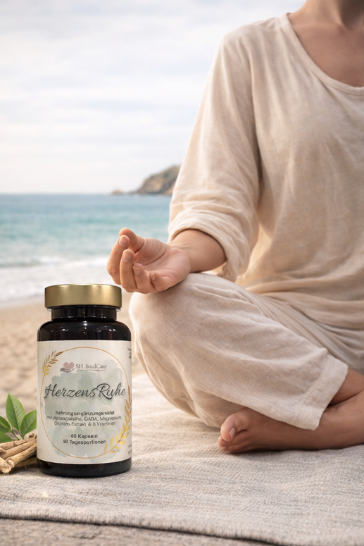 HerzensRuhe vereint Pflanzenkraft und Mikronährstoffe, um dich im Alltag mental zu stärken und dein inneres Gleichgewicht zu unterstützen.
